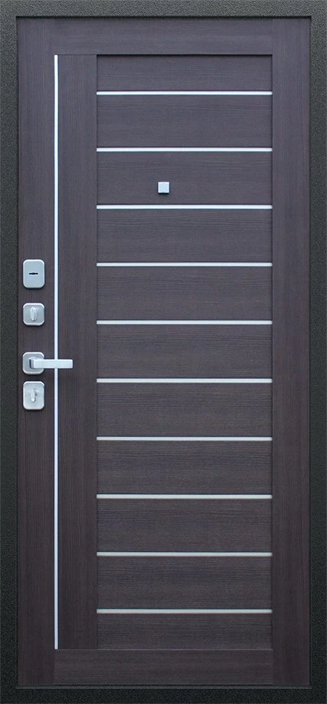 Надежная входная Дверь Соло орех рифленый премиум класса по цене 36 227 руб. Большая толщина стали защитит от проникновения в ваш дом, квартиру или коттедж. Используется очень качественная фурнитура: замки, цилиндры, ручки, защелки. Покрытие и отделка двери изготовлено под внимательным контролем производителя. Дверь имеет долгий срок службы и гарантию.