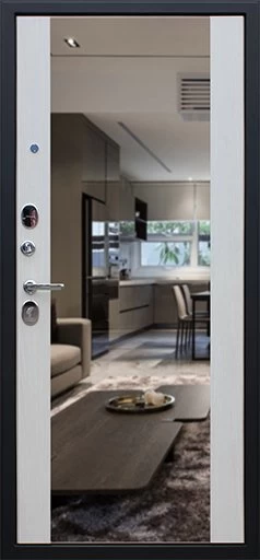 Надежная входная Дверь Вектор с зеркалом премиум класса по цене 49 677 руб. Большая толщина стали защитит от проникновения в ваш дом, квартиру или коттедж. Используется очень качественная фурнитура: замки, цилиндры, ручки, защелки. Покрытие и отделка двери изготовлено под внимательным контролем производителя. Дверь имеет долгий срок службы и гарантию.