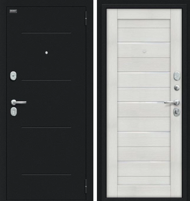 Надежная входная Браво Техно Kale Букле черное/Bianco Veralinga премиум класса по цене 34 777 руб. Большая толщина стали защитит от проникновения в ваш дом, квартиру или коттедж. Используется очень качественная фурнитура: замки, цилиндры, ручки, защелки. Покрытие и отделка двери изготовлено под внимательным контролем производителя. Дверь имеет долгий срок службы и гарантию.