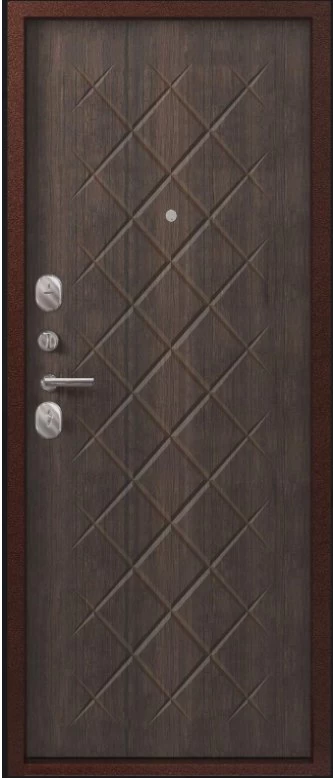Надежная входная Дверь V-02 медь антик - венге премиум класса по цене 37 377 руб. Большая толщина стали защитит от проникновения в ваш дом, квартиру или коттедж. Используется очень качественная фурнитура: замки, цилиндры, ручки, защелки. Покрытие и отделка двери изготовлено под внимательным контролем производителя. Дверь имеет долгий срок службы и гарантию.